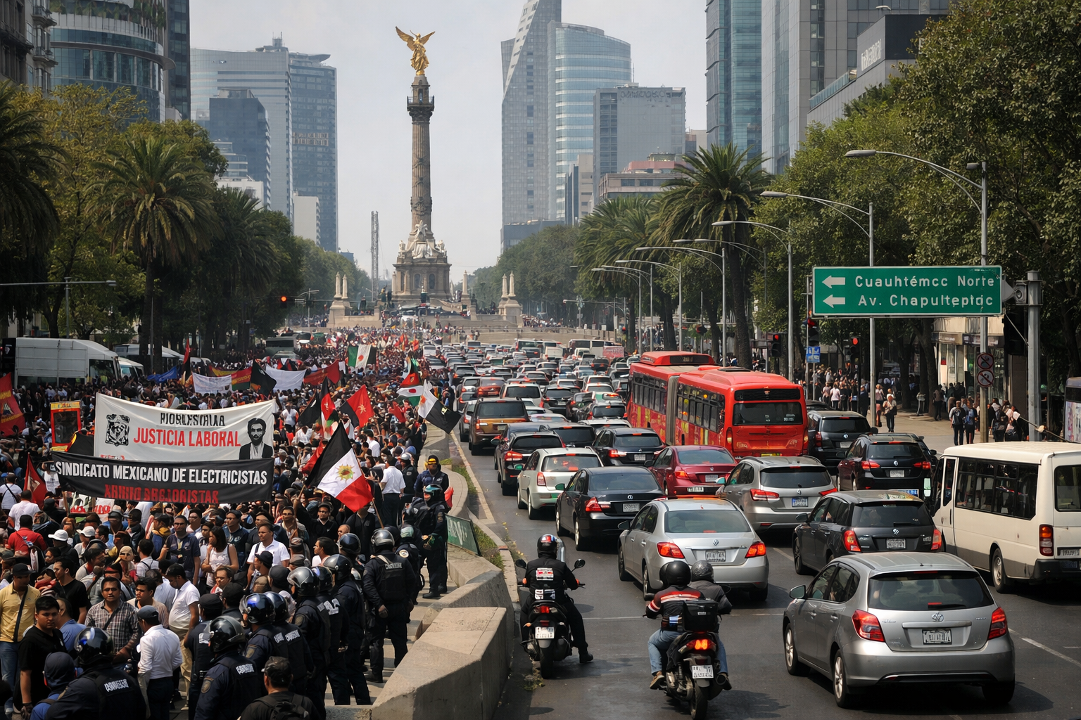 En el corredor de Paseo de la Reforma y sus cruces con avenidas como Juárez y Eje Central, las concentraciones han obligado a implementar desvíos. Automovilistas reportan tiempos de traslado hasta el doble de lo habitual en horas de la tarde, justo cuando oficinas y escuelas comienzan a liberar flujo.