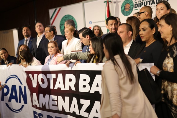 Conferencia de prensa de los diputados y del CEN del PAN, encabezada por Elías Lixia y Jorge Romero, dónde crítico la intención del gobierno federal de regular las redes sociales y la inteligencia artificial, además de reconocer al PT y PVEM su gesto de autonomía y valor de enfrentarse a los designios de Claudia Shiembaun. Fotos Bruno Cortés/Maya Comunicación